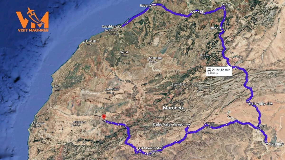 Weather: The best time for this Morocco itinerary 5 days is Spring (March-May) and Autumn (Sept-Nov). Summer (July-Aug) can reach 45°C in the desert.