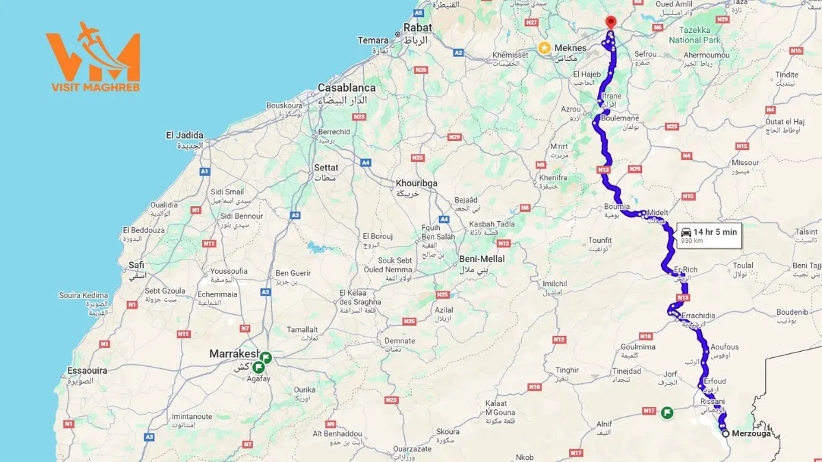 Covering approximately 470 km (290 miles) each way, this journey is an exercise in contrasts. In the morning, you might need a jacket to ward off the mountain chill in Ifrane; by the afternoon, you will be shedding layers under the pre-Saharan sun. This route is often called the “Road of the Caravans,” a historic path used for centuries to trade salt, gold, and spices. Today, it remains one of the most scenic drives in North Africa.